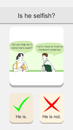 In life there are lots of situations that cause dilemma. With this game you will face them and you will answer this questions: “if you were there would you do?” “Who is right?” “Do you agree?”.