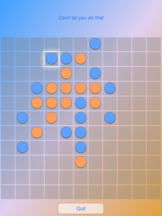 Your goal is to get 5 discs in a row, in any direction. And prevent me from doing just that.