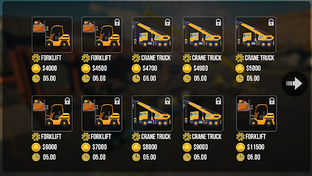 The vehicles in this game, which has realistic construction equipment vehicle physics features, are as follows: There are various vehicles such as crane truck, dump truck, forklift, telescopic loader, tower crane, backhoe loader, excavator, pickup.