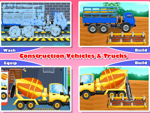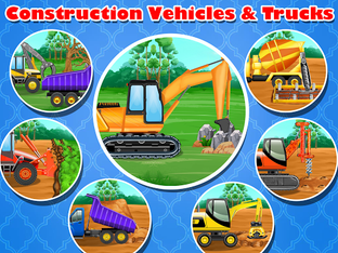 Discover one of the best construction games for kids from age 2-13! Construction Vehicles & Trucks is a fun-filled, colourful game for thinking, building and play, all at the same time. Keep your children entertained with this deep-digging, big building, pile driving journey of fun.