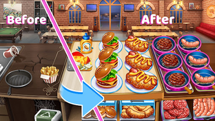 Upgrade cooking ingredients and cooking chef utensils in this cooking madness game and add some more fun in your restaurant kitchen. Cook items and go with time management skills to serve the hungry customers on time to get super rewards and coins. Tap the item and start cooking steaks, burgers, hot dogs, sweets and much more for hungry customers in your own cooking cuisine game for girls and all ages.