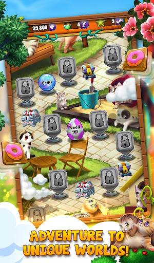 Match 3 Cool Cats features an impressive collection of over 100 puzzles and bonus levels, with more content added weekly, ensuring hours of endless fun. Unlock HD artwork and keep it forever by using power-ups and boosters to assist you in winning levels. You can even rescue and evolve your pet as you proceed in your adventure journey.