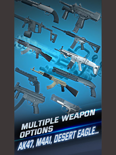Multiple weapon options, AK47, M4A1, SCAR, Desert Eagle...and even Gatling, all for free! Take them and destroy all enemies!