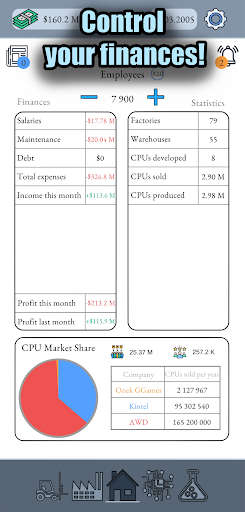 This economic simulator does not force you to play the only way, you can choose your own way of developing the company!