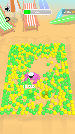To make things more interesting, make use of your arsenal of crab claws to alter the direction of your chosen balls. Shuffle them in their respective holes to complete the challenges or even unlock new levels.