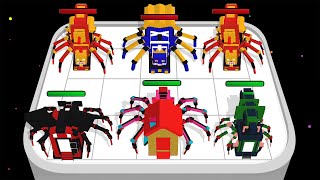In Craft Merge Choo Spider Train battle, you must guide your spider train squad through obstacles and defeat the enemy by merging and evolving your spider train monsters. Do you think it’s easy? You wish. The more you pass the levels, the harder the Spider Train Monster will be. The amazing and challenging Choo Spider Train Monster is waiting for you.