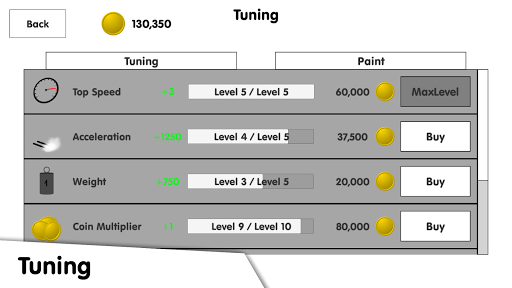 Choose between 15 vehicles, 7 tuning upgrades and an infinite number of colors for painting your car.