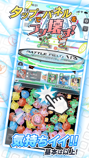 With the simple tap of a button, experience the ultimate thrill as you destroy panel after panel in the game. The battle system features various systems such as the flashy Crash Skill and the high-reward Fever System, all of which add to the excitement of the game.