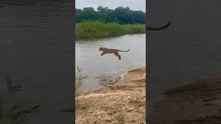 The Stone Drift female crossing the Sand River 🐆 #wildafrica #safarilife #safaritourMalaMala Game Reserve