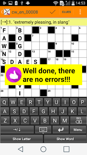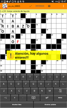 - Aid extra in case of difficulties with the crossword (shows single letter or word)