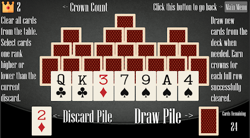 Clear the board in this classic card game by playing cards one rank higher or lower than the current discard pile card.