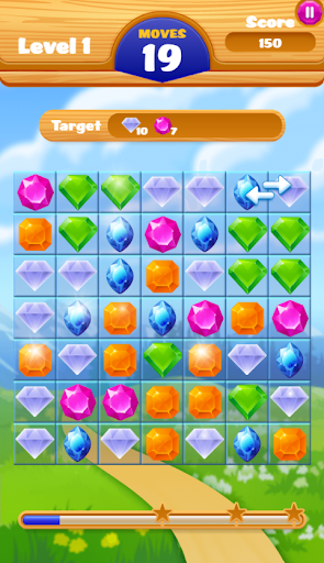 The objective is to match colorful jewels and eliminate them from the board to earn points and progress through levels.