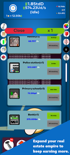Click again and again to acquire a multitude of buildings and earn even more money!