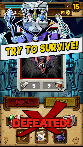 Engage in a thrill-packed Card Battle RPG where you venture deep into dungeons and risk losing all the hard-earned progress. Will you have the courage to keep going or back out with your rewards? In this heart-stopping game of "chicken", you get to decide when to call it quits.
