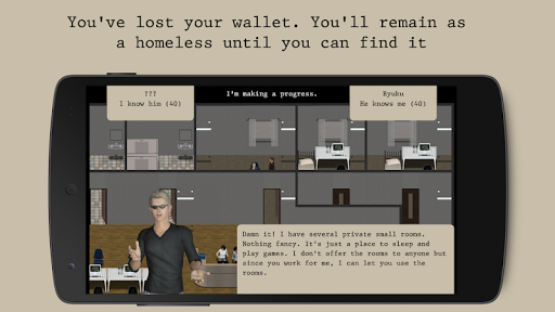 Playing as a young amnesiac male character, you wake up not remembering anything about yourself. You have to figure out why you were sent to the city in the first place. You start with nothing and it's up to you to survive in a city troubled by gang fights and harsh economic condition. You'll be forced to scavenge, looking for odd jobs and carrying out dangerous quests just to earn money to buy food and find shelter to sleep.