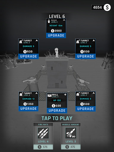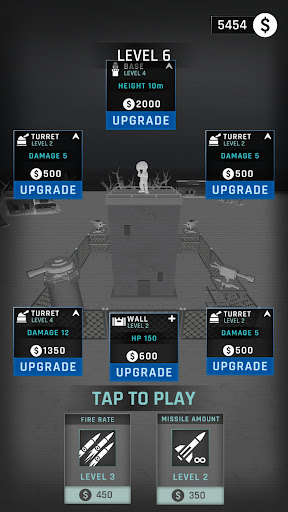 As you progress through the game, you'll earn rewards that can be used to upgrade your weapons and base defenses such as turrets to deal more damage or walls to keep longer.