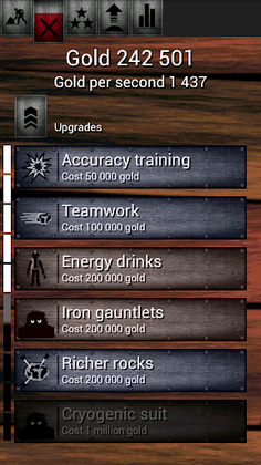 Mine gold by shattering rocks, buy workers, and upgrades to become more productive & reach milestones. Discover stories of each worker and upgrade.