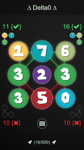 Drag and drop each circle between other circles to achieve the correct sum. The level is complete when you get a Delta0 for each corner (4) where your sum equals the expected sum. Be sure to check out the tutorial for some helpful tips and tricks. This game may look easy, but it's sure to test your mental abilities to the fullest.