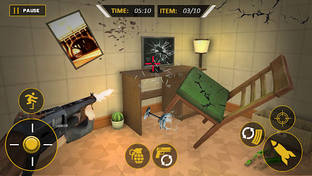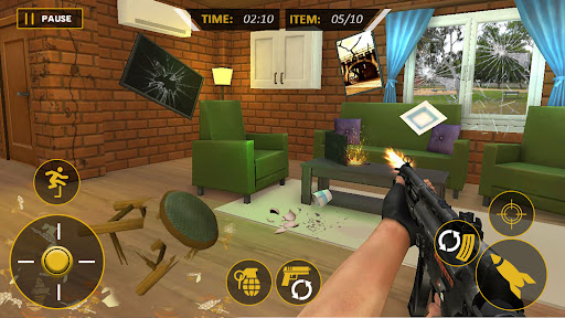 Destruct the home interiors with guns and enjoy the destruction effects.