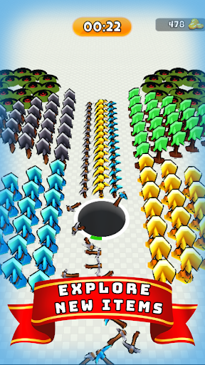 In this game, you will control a hole to collect all items on the ground. After that, you will throw all the items you collected to destroy the big boxes to get unique objects.