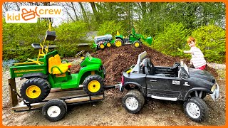 Landscaping mulch and trees with tractor, truck, digger, and water trailer. Educational | Kid CrewKid Crew