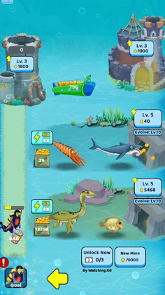 Welcome to Idle Water Dino Tycoon where you can have different ocean dino species, build underwater gold mine, and build your Jurassic underwater World.