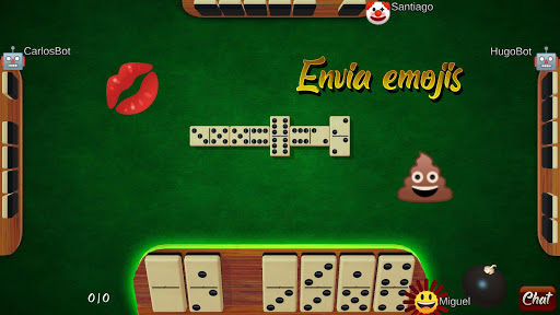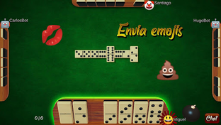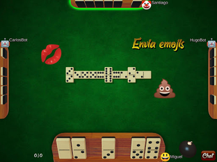 Si escribes un solo emoji o emoticono (uno solo), este se transforma en un objeto que puedes lanzar a la mesa (alguno de ellos acompañado de sonido). También tienes una bomba que hará explotar las fichas del tablero (luego ellas se recompondrán =)).