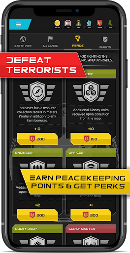 Domination: Earth" is an augmented reality game that allows you to conquer the real world which surrounds you. The game has a military theme which lets you capture locations and expand your empire using your phone or tablet. You can think of it as a supercharged version of Geocaching.