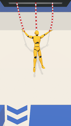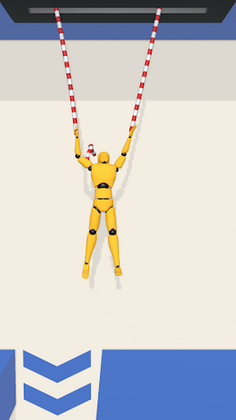 A man is been hanging by the ropes.