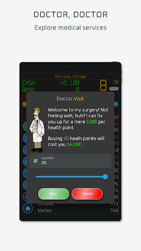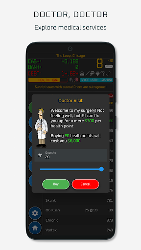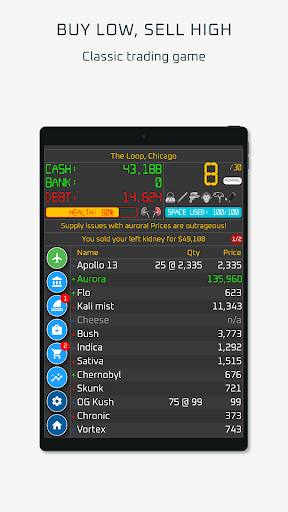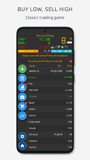 Travel from location to location to see price changes, avoid cop chases, muggers, tool up with more storage and protection at the Store (especially during sales), borrow even more from other loan sharks, visit the doctor to get healed, get tips from the Old Lady, and much more!