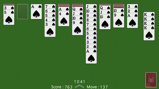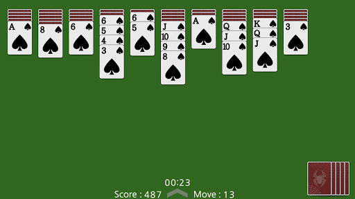 The main purpose of the game is to remove all cards from the table, assembling them in the tableau before removing them. Initially, 54 cards are dealt to the tableau in ten piles, face down except for the top cards. The tableau piles build down by rank, and in-suit sequences can be moved together. The 50 remaining cards can be dealt to the tableau ten at a time when none of the piles are empty.