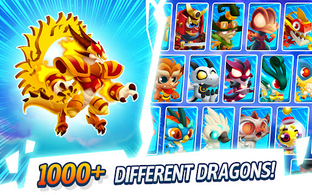 Complete the Dragon Book by combining different dragons of Fire, Nature, Pure, Legend and other elements, to create over 1000 unique hybrid dragons! The game introduces new dragons every week through breeding events and special islands, so your collection never stops growing. You can decorate your dragons with attractive Dragon Skins from events and go on an exciting adventure through the Dragon Quests. Challenge other Dragon Masters in the game's PvP Arenas, climb the leaderboards and collect rare dragons to claim Warrior's Chests!