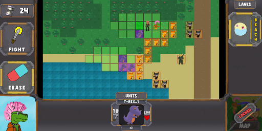 Help the Dum Dum Dinos save their homeland from tyrannical cats in this strategic narrative game featuring base building, troop deployment, and hero powers.