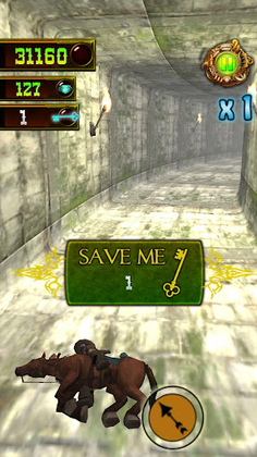 Use your swiping techniques to move left and right, and jump over obstacles. The arrows provided will help you fight your master enemies. You can use the save-me button when obstacles or masters kill you, making this game reminiscent of the popular 'temple run' style. Purchase additional lives if you desire to save yourself.