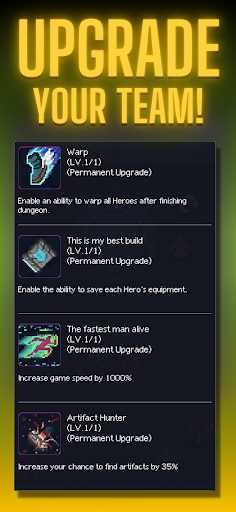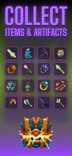 Defeat monsters and bosses, and complete quests to level up and upgrade your hero. Along the way, upgrade new abilities and collect legendary equipment. In the deep and immersive dungeon of Dunidle: Idle Pixel RPG Games, you'll discover hidden secrets and treasures.