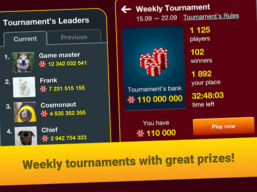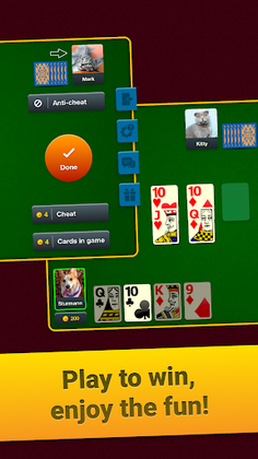 There is a cozy green tablecloth, dynamic 3-minute game sessions, convenient chat and gifts. Now there's nothing to distract you from your victory. You can cheat like in a real game Durak, use tips, get to the top of the game TOP and participate in weekly tournaments with players from all over the world.