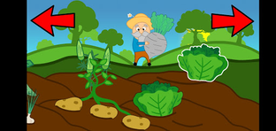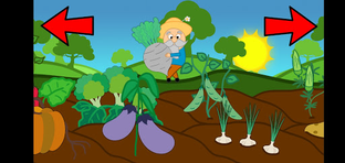 The player gains control of the grandfather. The goal is for him to go to the garden and bring the grandmother the right vegetables she asked for. When pressing any vegetable, the grandfather says his name so that the children can learn them.