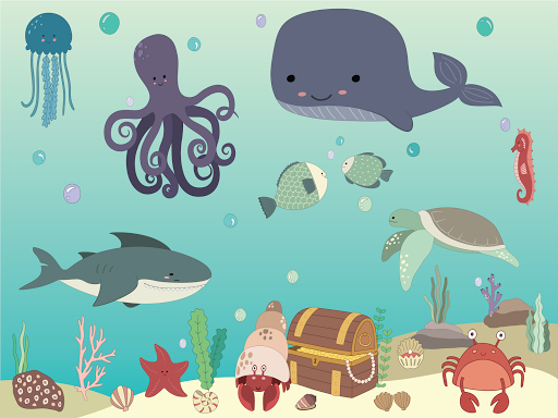 Bli med ned i havet og bli kjent med alle sjødyrene som bor der!