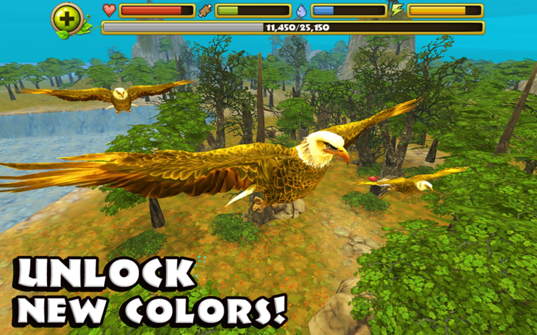 Soar as a Bald Eagle in a survival adventure. Grow a flock, fight predators, and increase stats. Navigate a huge 3D world. No ads, no purchases.