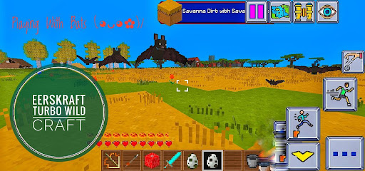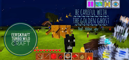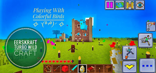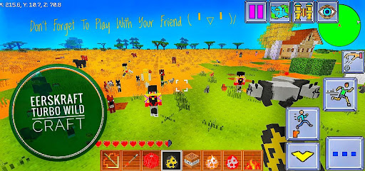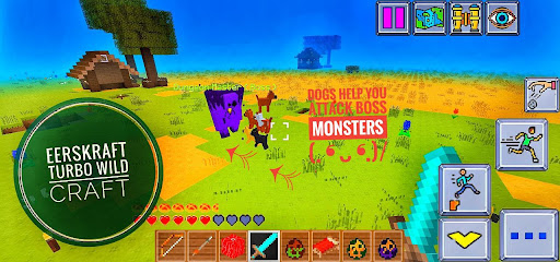 Animals also roam the world that you create, such as birds, dogs and cats, dogs will look for chicken, meat and if the dog meets a monster then the dog will attack the monster. Also watch frogs attack bees if they get close to each other. Enjoy playing with wild animals and monsters in this crafting and building game. So download and play EersKraft Turbo Wild Craft.
