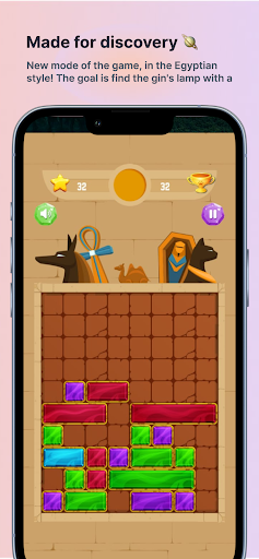 New game Block Puzzle Egypt with exciting game modes, where you need to break and clear the playing field, find the fairy lights to add yourself twists!