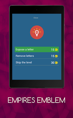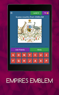 With EMPIRES EMBLEM, each level consists of a single question about empires, making it a great way to challenge yourself and keep your knowledge sharp. As you play, you'll need to rely on your knowledge, quick thinking and typing skills to answer each question before time runs out. But don't worry, if you get stuck, helpful hints such as removing letters or revealing correct ones will give you the boost you need to move forward.
