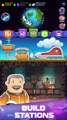 Unlike other idle games, you have the chance to develop your own strategy to manage your factories, products and workers! Power up your ships and let your workers produce hundreds of items to fill the factories' mine warehouse! Profit, upgrade and grow your employees! Earn gold!