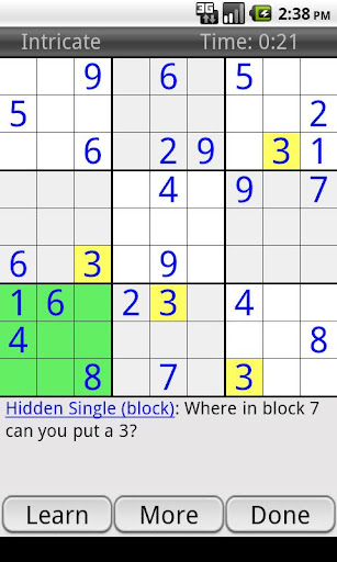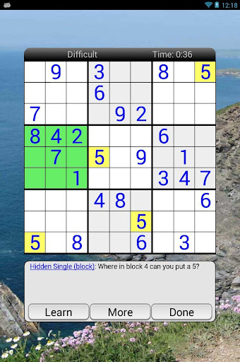 Our multi-stage hint system starts with a gentle reminder to get you back on track and works up to an illustration of the exact technique to use and how it applies to the current board. Use our hints to ease those frustrating moments and to learn how to be a better player.
