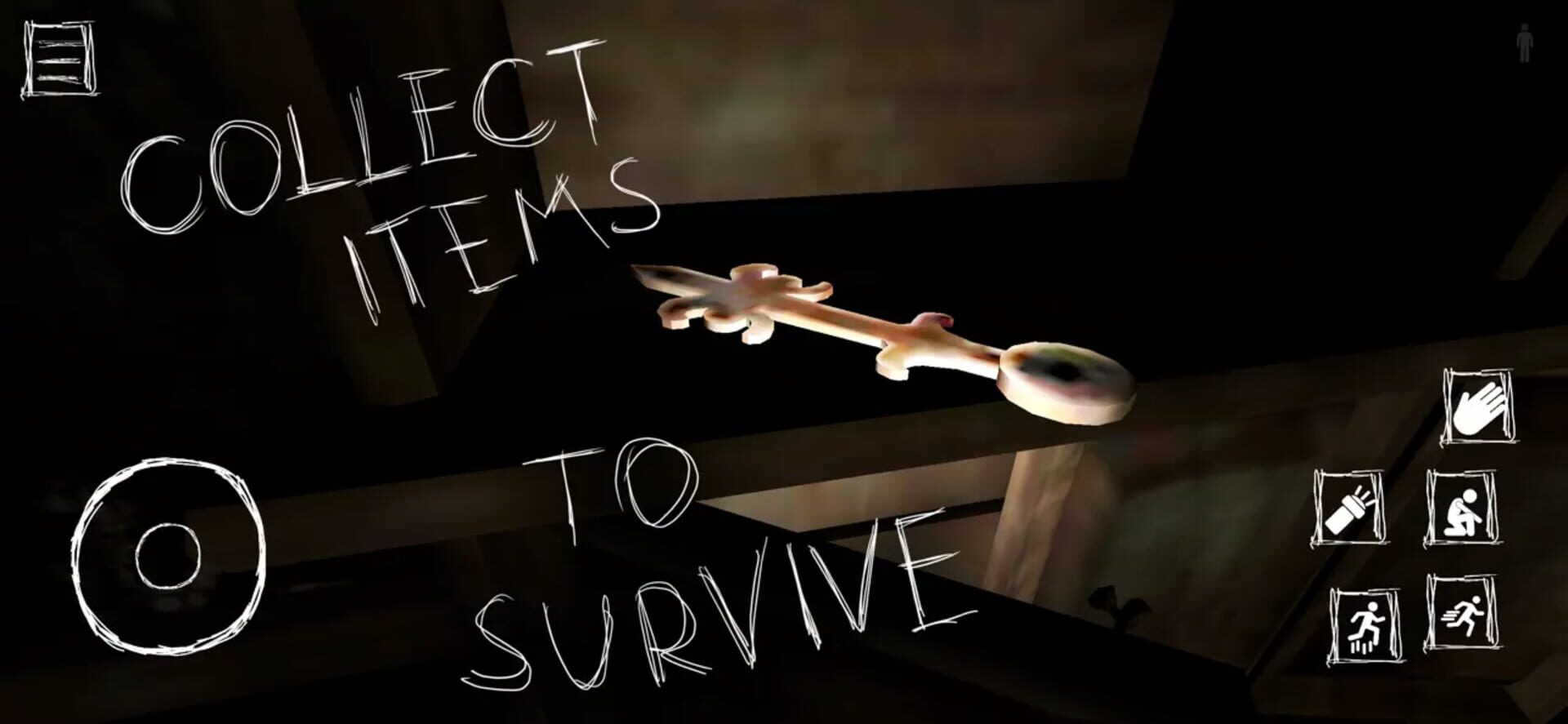 First, your goal is to find the main gate key, which can be located anywhere in the mansion. Keep in mind that the key icon appears on the screen when you have collected it. You can also monitor your status using different icons on the screen, such as when you are walking, running, or hiding. When a crossed-line eye icon appears, it indicates that you are hidden and safe from eni Ayuwoki.
