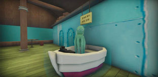 O chefe do mal e seus trabalhadores escondem algo no porão quando produzem a carne e à noite você começa a investigação do Terror Esponja.