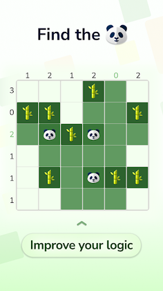 Match each panda to its bamboo in this playful twist on Tents and Trees. Light-hearted logic at its finest.
