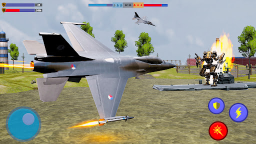 Jet fighters are made for air-to-air fighting combat with enemies aircraft. Some jets have properties to attack ground and some have to attack aircraft combat fighters. All the top features from all jet fighters like F15 Eagle, F16 Fighting Falcon, F17 Thunder, F18, F19 stealth fighter, F20 tiger shark, F21 forever are in one F22 Raptor Jet Air Fighter. You can easily enjoy all the fighting features in this raptor. Now F22 Raptor is under you and you have to fight against US army Robots to defend your frontline army airbase to defend your country. You must be aware this game is not an Air Jet fight transformation robot game, but you can still enjoy your time to play as a Jet Fighter Pilot. You have to fight against robots warships, static steel fighters robots, and flying steel futuristic robots. Robo warships are fully equipped with multilevel warfighting robot. I know you got bored from simple jet simulation games or simple jet fighting games or simple jet transforming simulation games, but this game is different one you can enjoy real feel of a jet pilot. US army robots are the army superhero warrior robots, now it's an open challenge for you to prove them false, complete your challenge and prove them wrong.