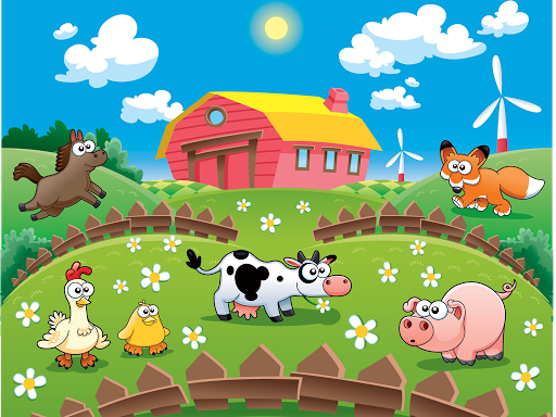Four different scenes, Farm, Road, Bubble pop and Countryside.