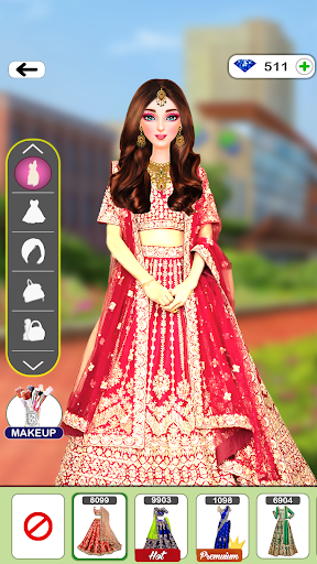 Build your dream wedding wardrobe look with this makeup and dress-up game.